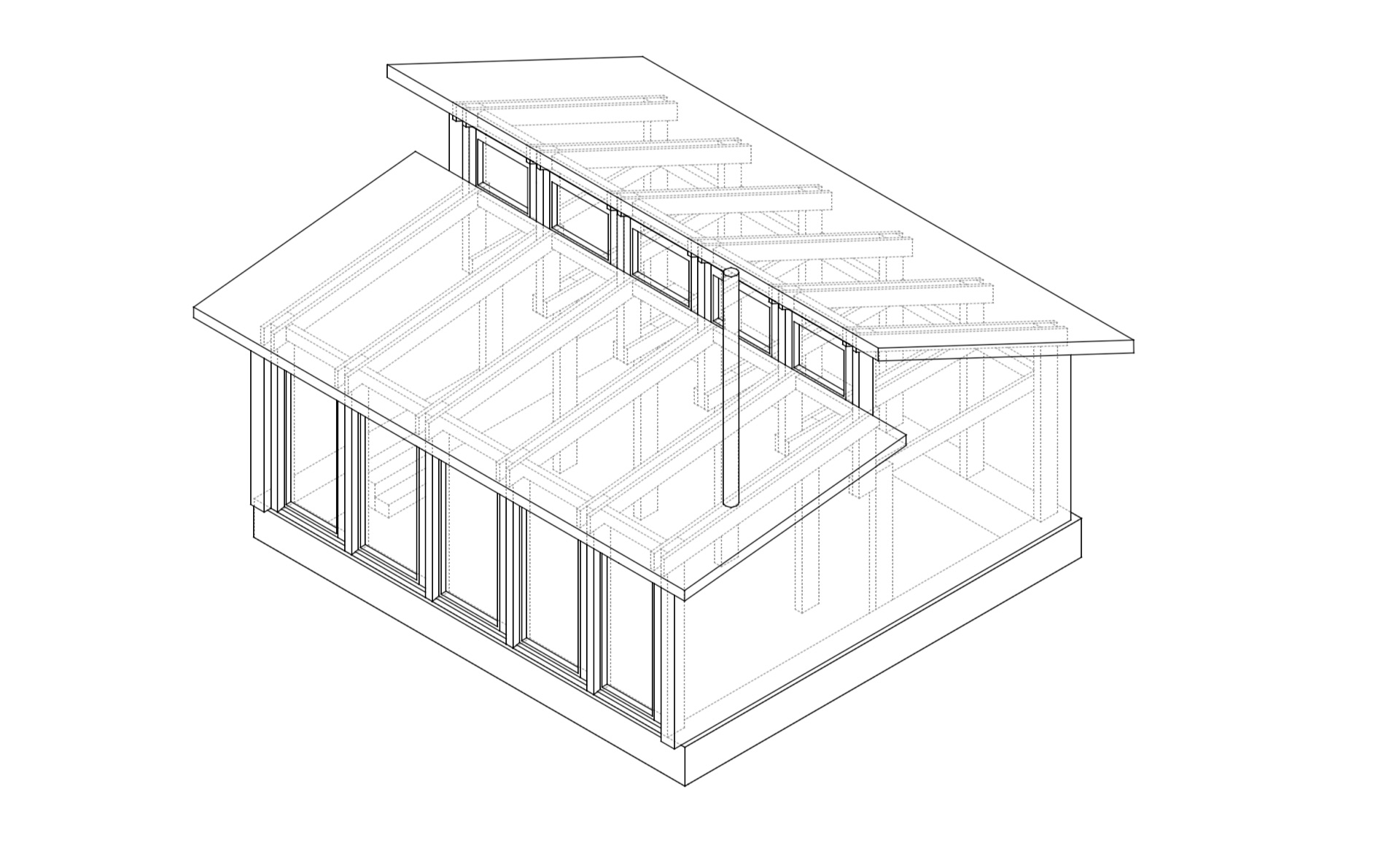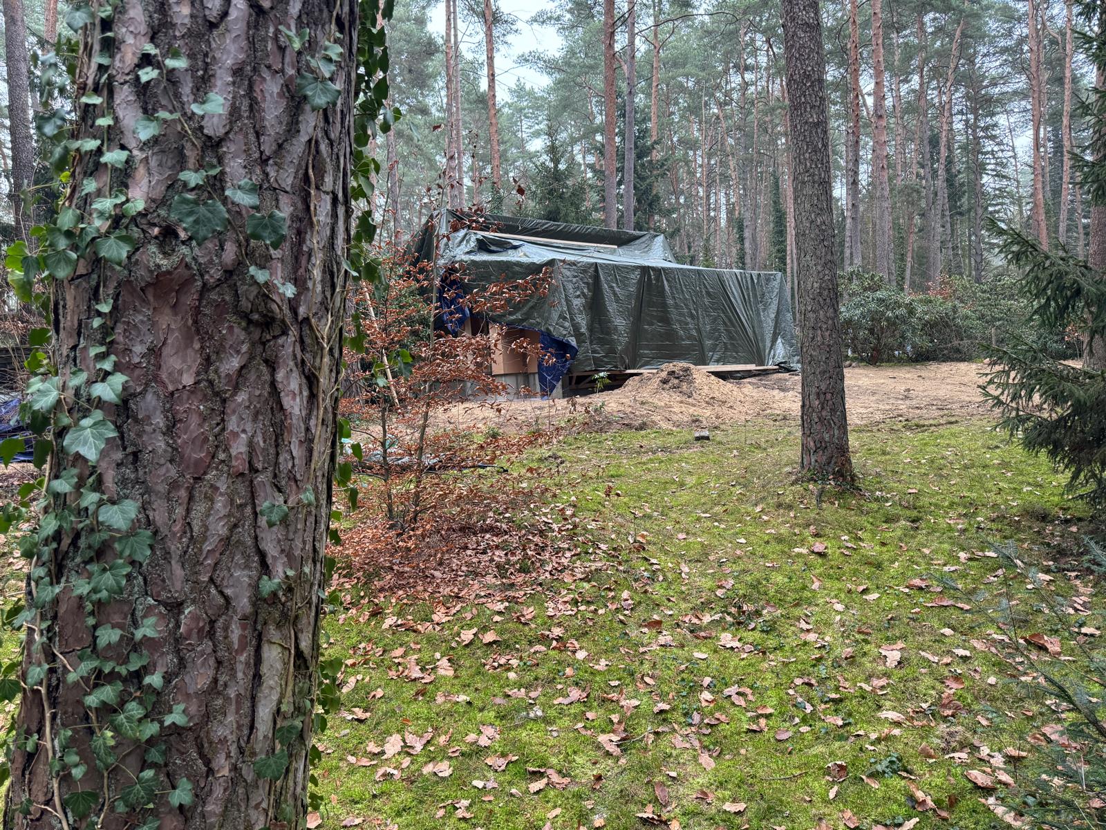 In a small cluster of holiday houses in the Brandenburg forest, a disused DDR bungalow had stood unused for decades. The surrounding pines gradually absorbed the structure, defining a site characterised by light, density and shade.