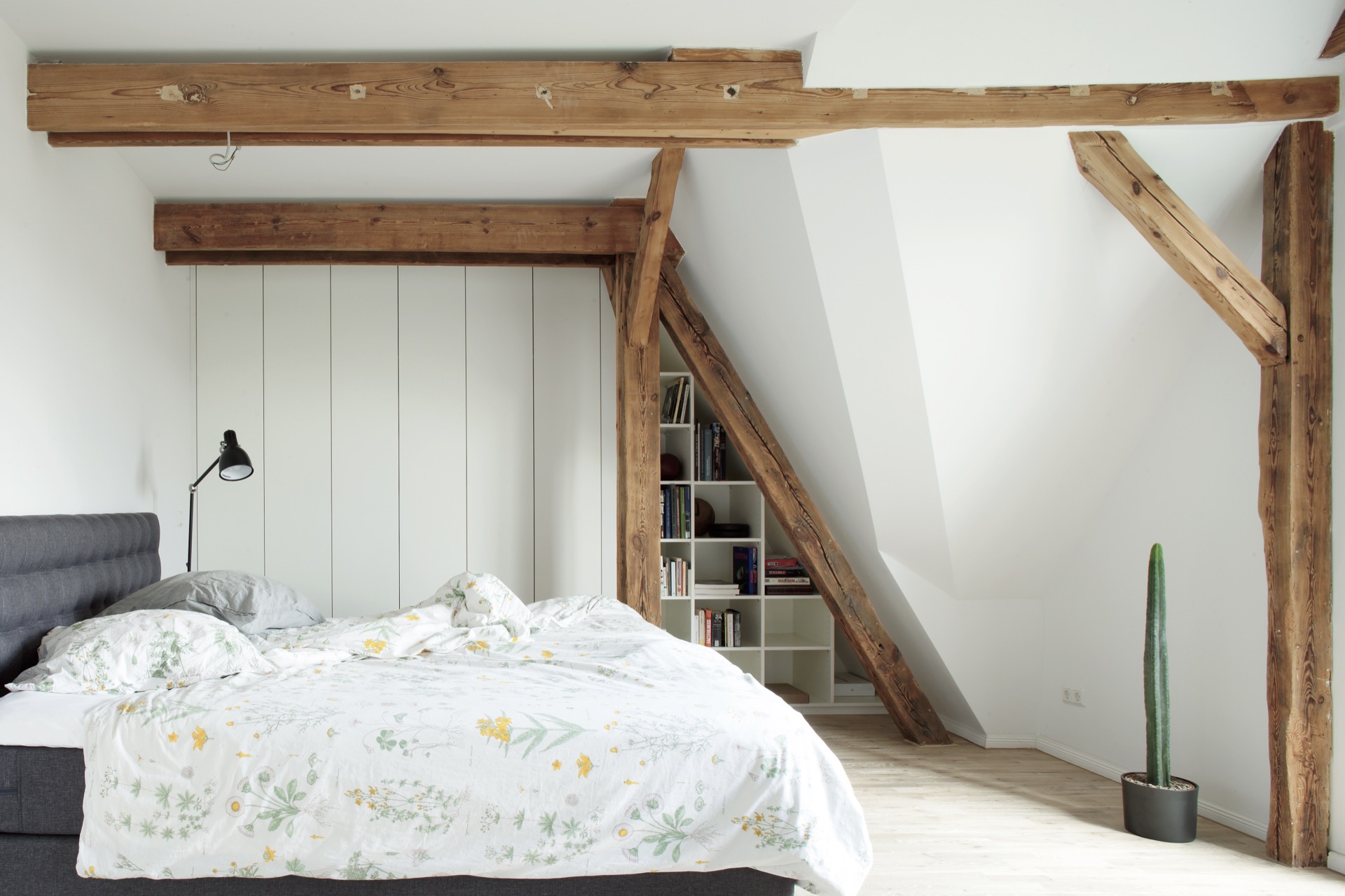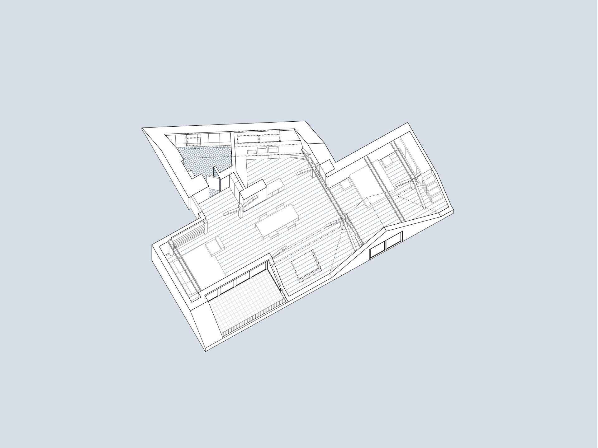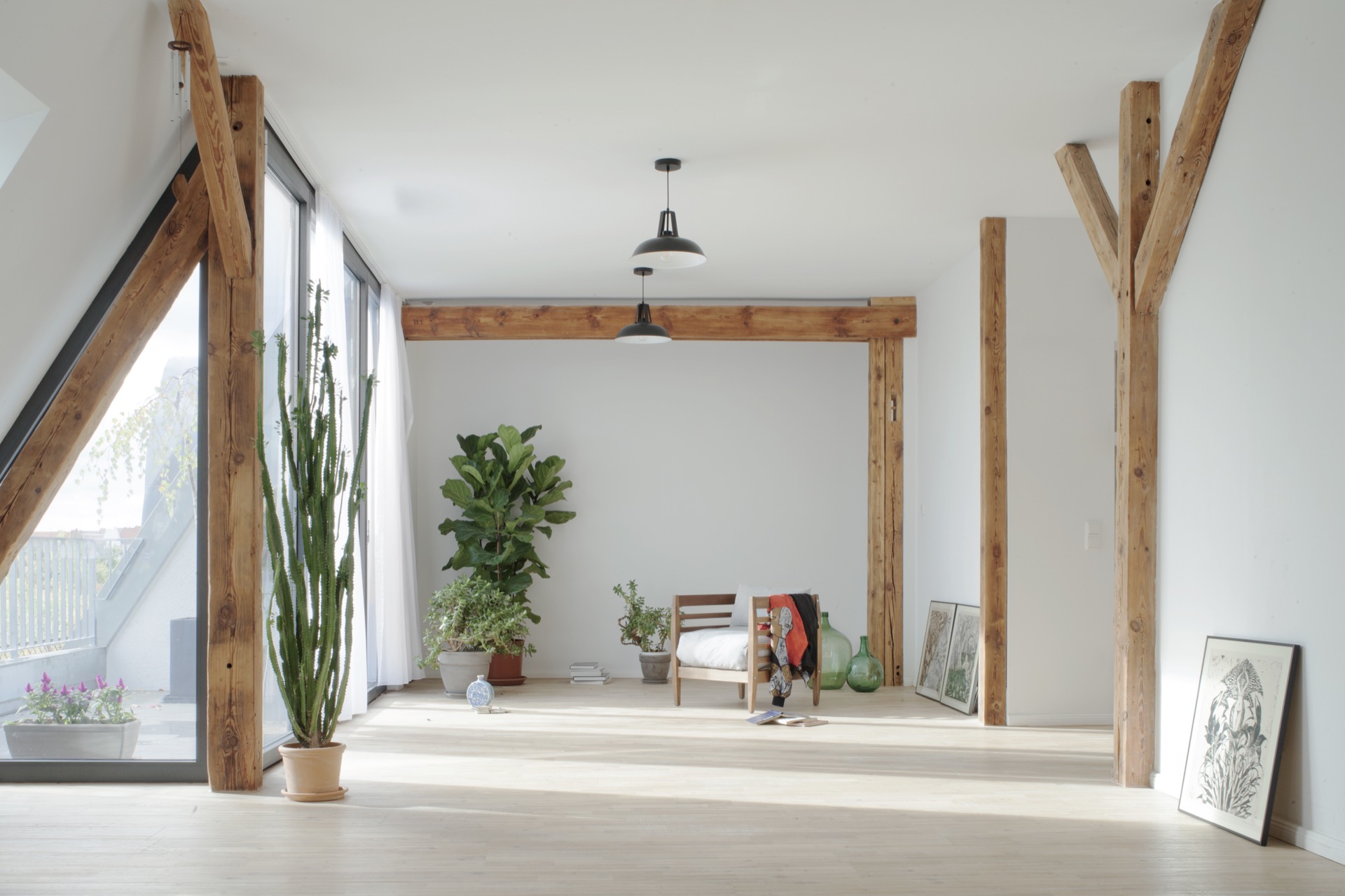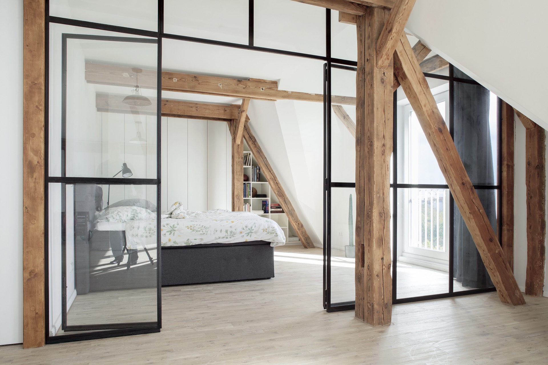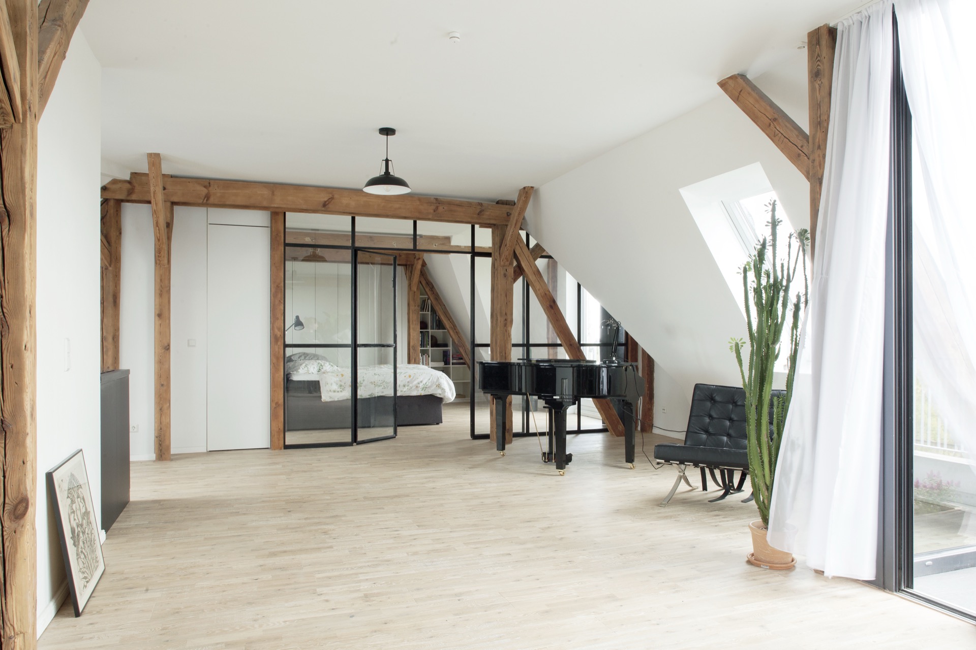 In a historic building in the heart of Berlin, a dark attic that once housed a sound engineer’s recording studio transforms into a luminous living space. The renovation responds to a wish for light, openness, and a terrace that frames panoramic views over the city, drawing the skyline into daily life.